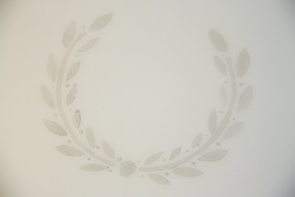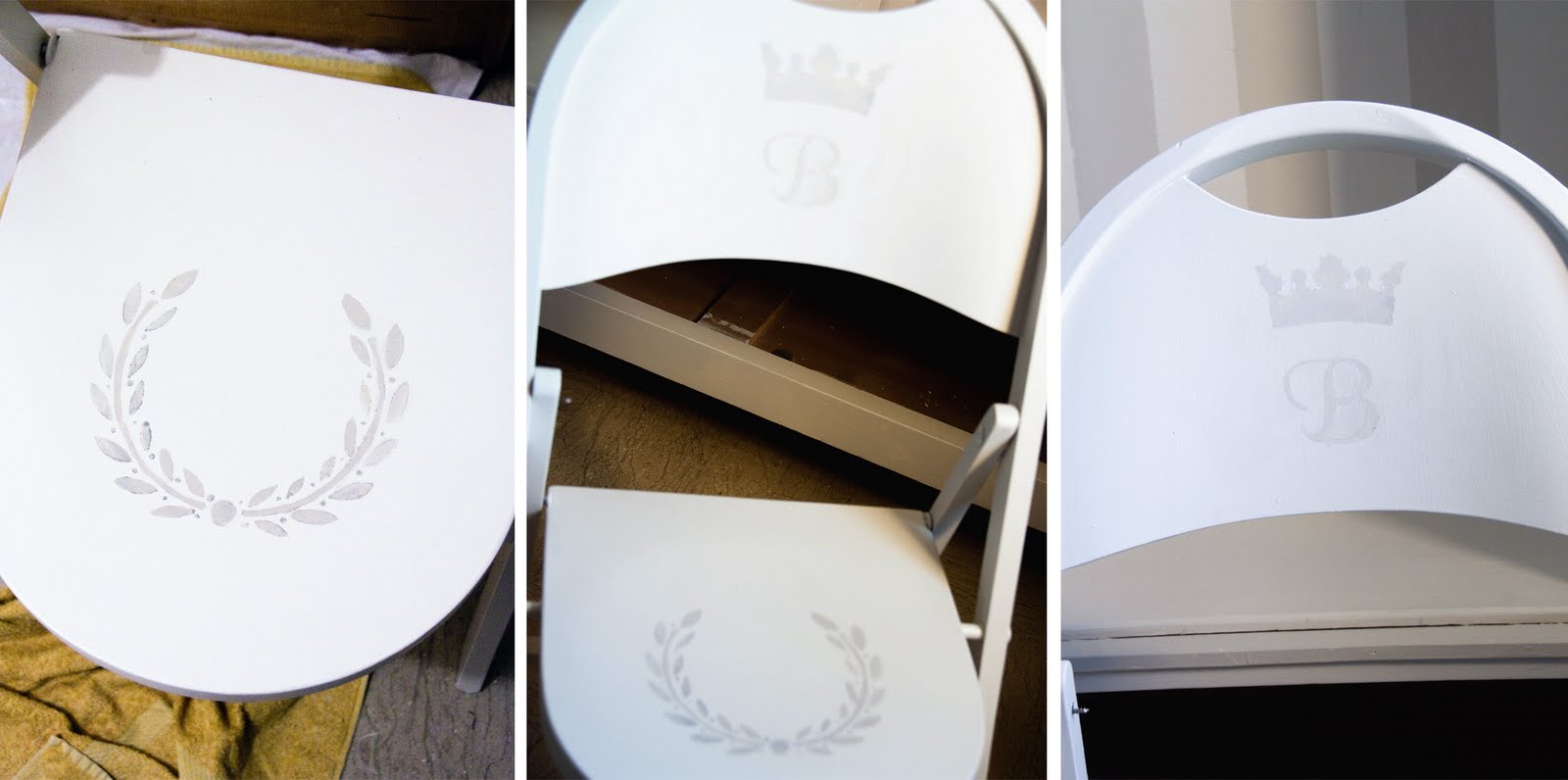 I’ve made my own stencil mask to decorate it. A laurel crown and a crown with our initial “B”