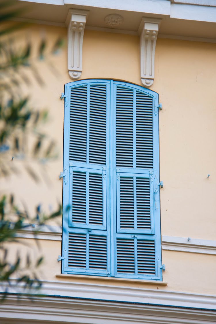 Big windows with colored shutters,