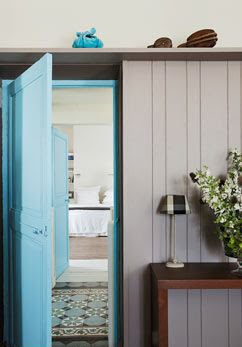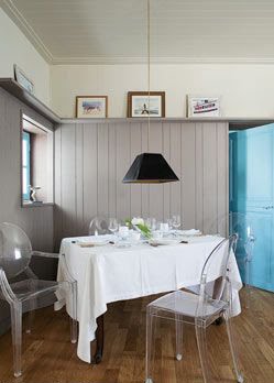 Totally white with some touch of blue, this is the characteristic of that house. Old furnitures and vintage pieces are well mixed.