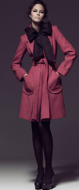 Very feminine with no frills, delicate dresses, soft shapes, dark colors.