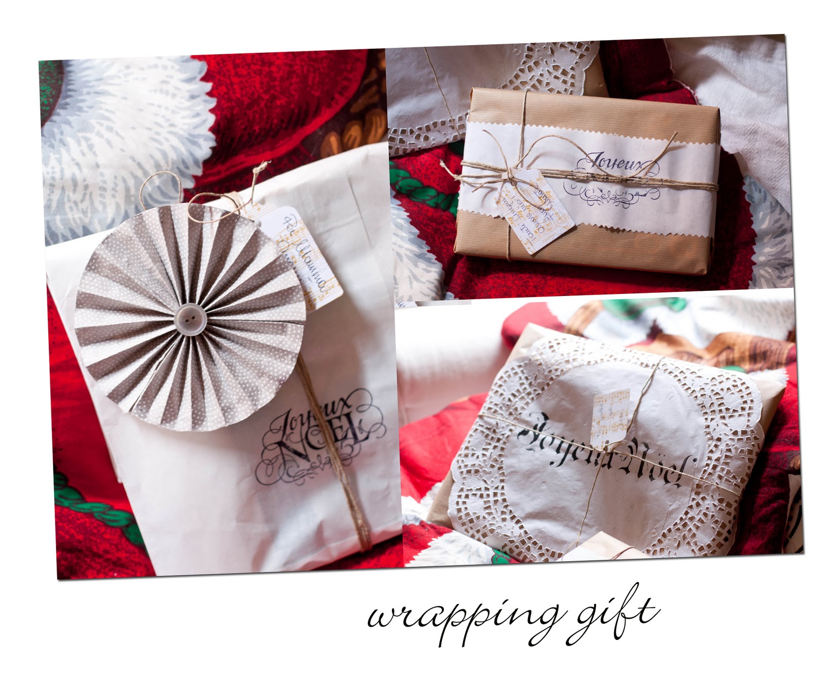 Potete usare diverse cose per impacchettare i vostri regali. Tessuti, centrini di carta ( gli stessi usati per i dolci) e anche stamparvi la vostra carta! Scegliete una delle vostre foto ed usatela per impacchettare i vostri regali.