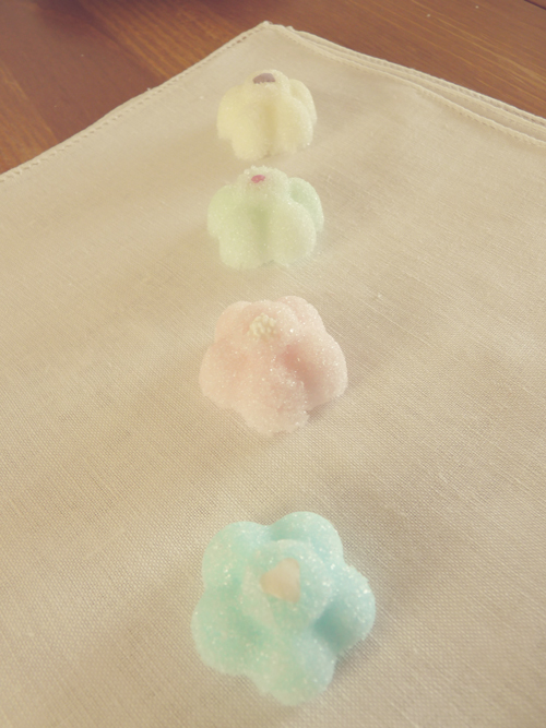 Potete rendere più carine le zollette inserendo una decorazione di zucchero sul fondo dello stampo oppure premendola leggermente nelle le forme ritagliate. Io ho usato palline e cuoricini commestibili.