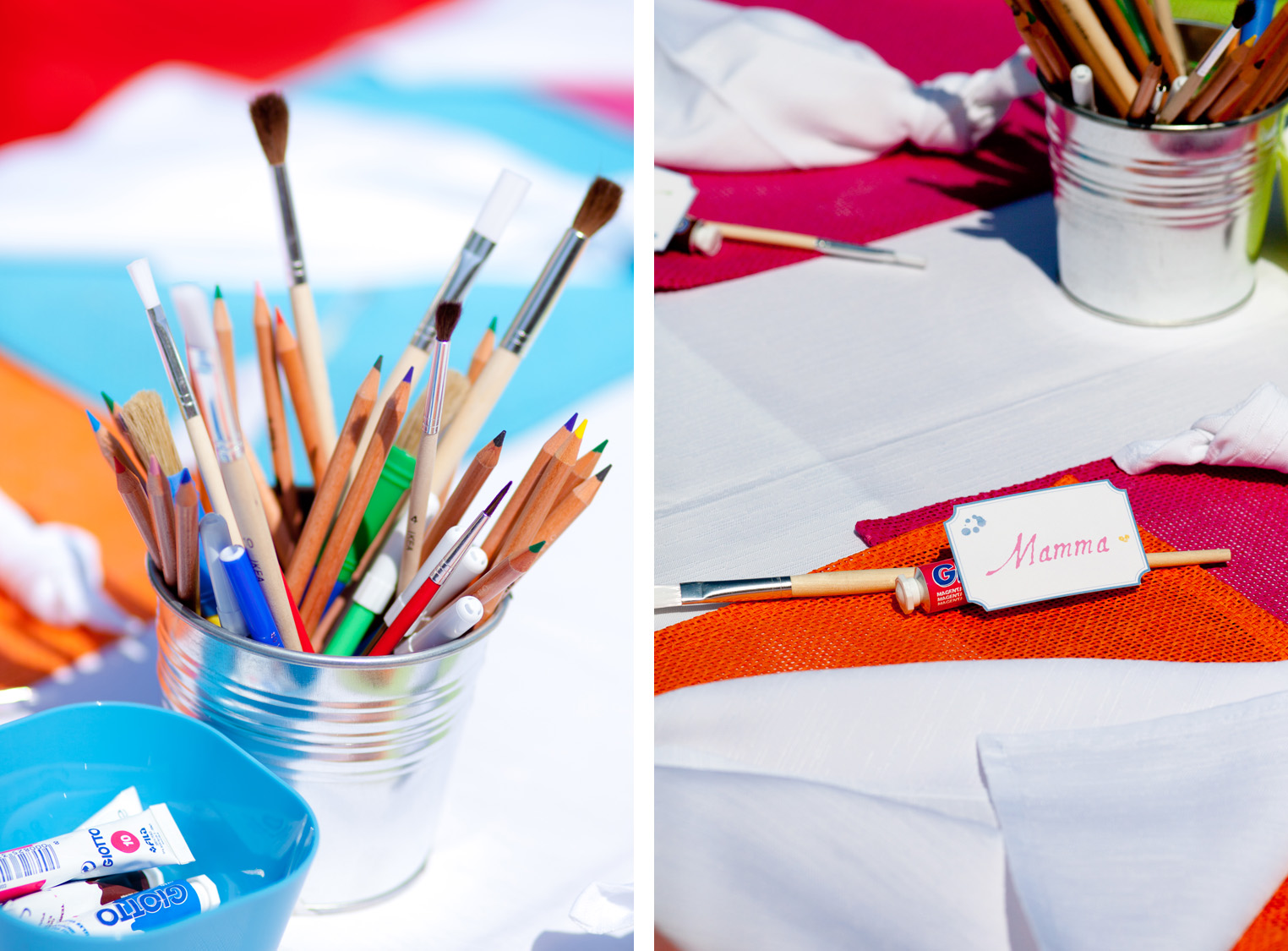 Suze made the stationery, Laura put together all the idea that Elena, Niccolò’s mother, had in her mind, Alessandra decorated the party and made the cakes (fantastic…she’s an artist too!) and I took the photos.
