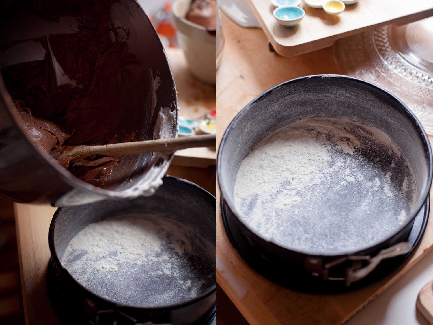 Imburrate ed infarinate uno stampo per torte e versate il composto.