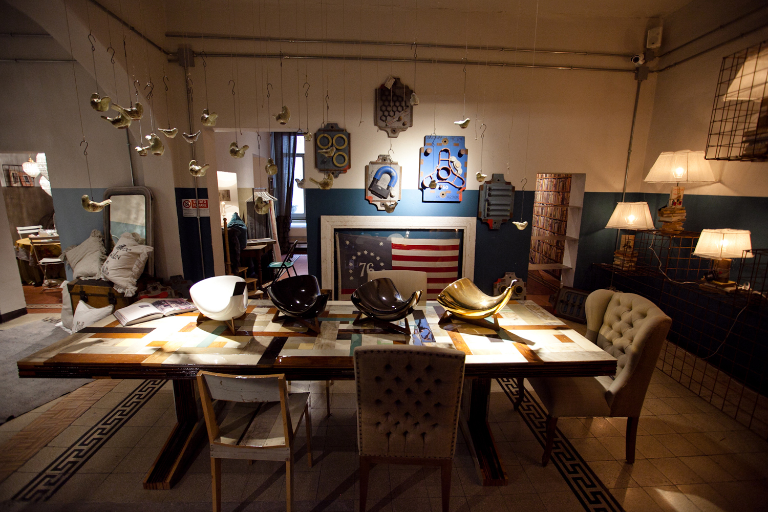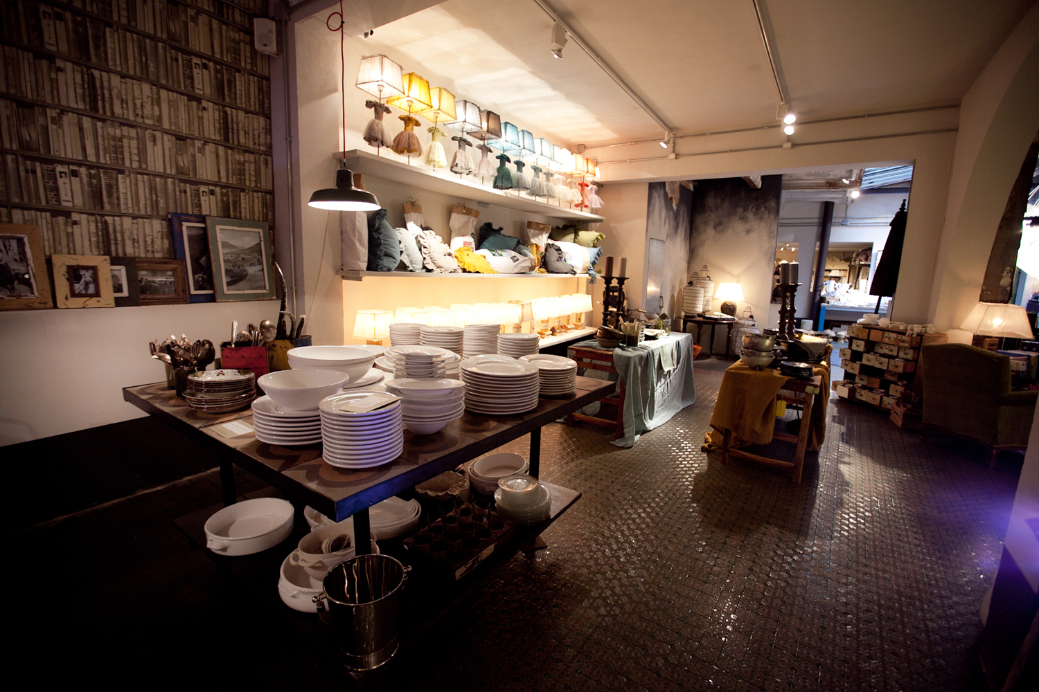 Lo store è strutturato su due piani dove come in una vera casa si trovano tavole apparecchiate, la cameretta dei bambini, il bagno, una camera da letto, un salotto ed anche un piccolo giardino d’inverno.