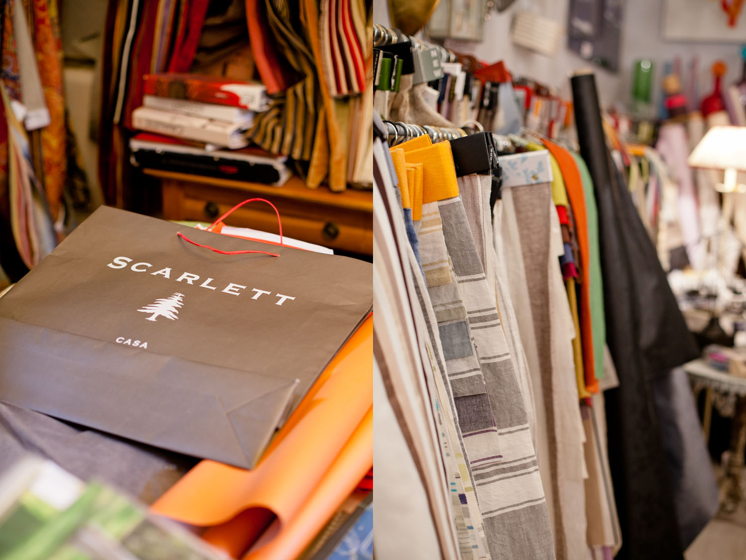 Sembra di entrare in un bazar di colori, tessuti e profumi. Il punto di pertenza è proprio il tessuto con un’ampia scelta di carte da parati e stoffe d’arredo a cui si aggiungono mobili, complementi d’arredo lampade. Non il solito negozio d’arredamento. Scarlett è tutto da scoprire. L’occhio non sa dove guardare per la vasta scelta di oggetti e colori.