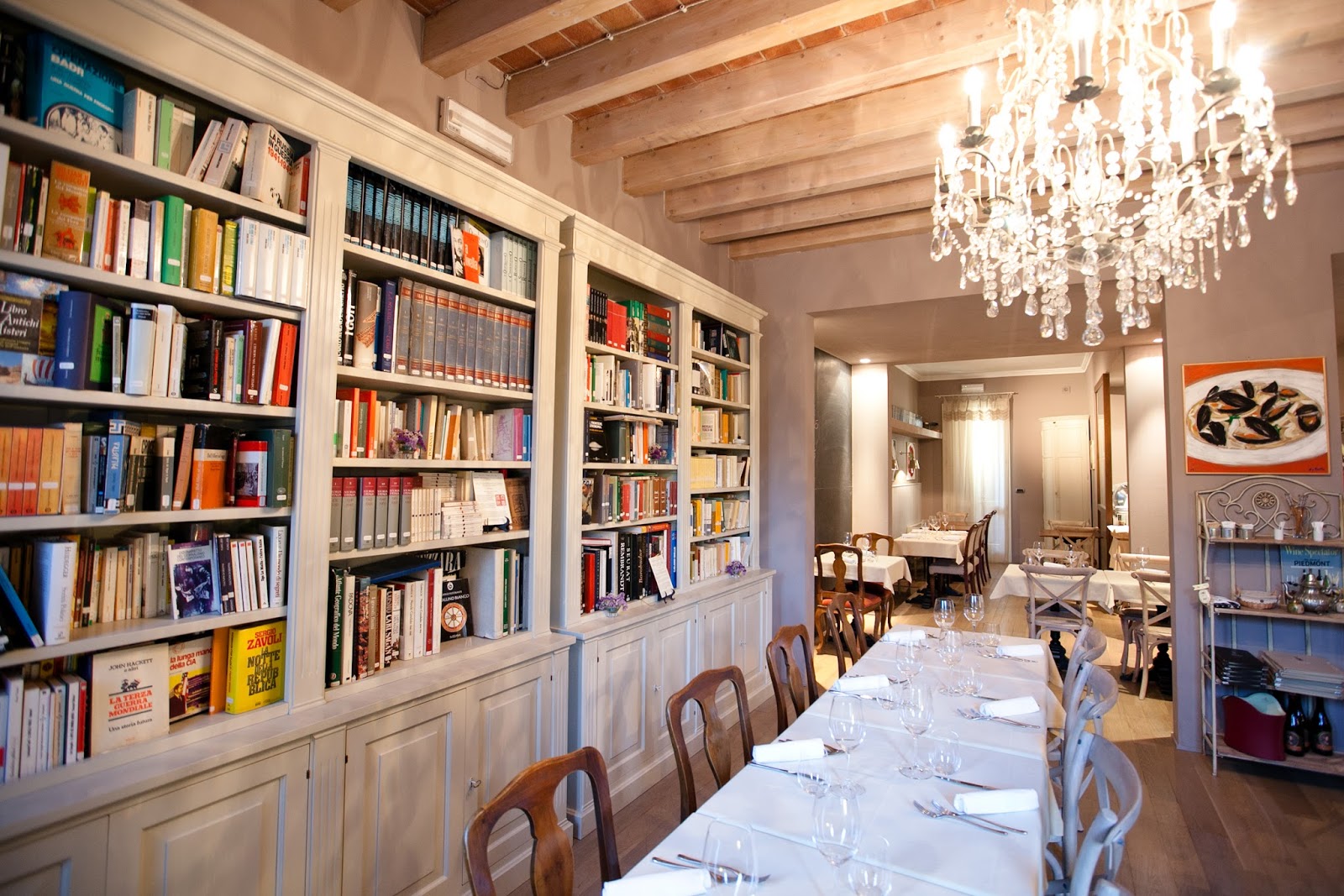 All’interno dell’enoteca è presente una piccola biblioteca che raccoglie alcune migliaia di libri, eredità dello zio dei proprietari, che ha abitato in queste stanze.
